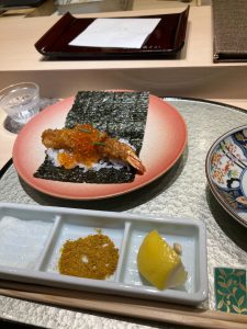様々な天ぷらをいただきましたが中でも、プリプリのホタテの天ぷらや、海老とイクラの天巻きは絶品で、思わず笑顔がこぼれる美味しさでした。